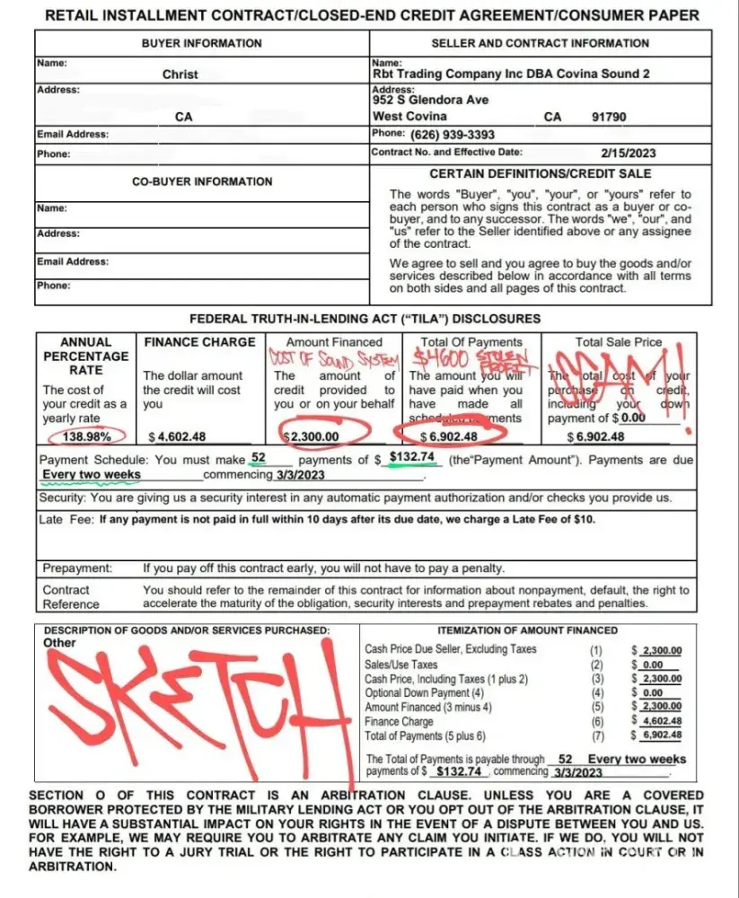 Desired outcome: I want my money back. I agreed to a 12.67% yearly rate not 151.99%