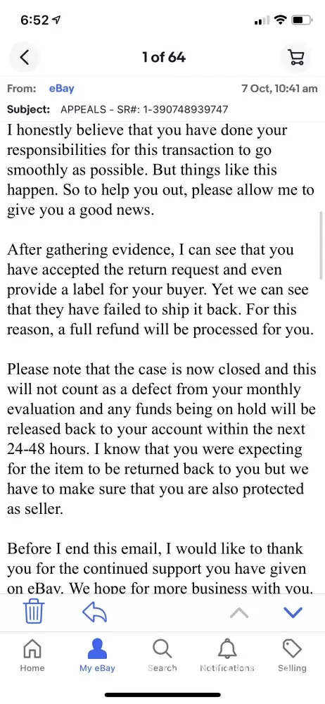 A Predator knew how to push the right ebay buttons to manage that I suspect, the agent said I need to speak to authorities to recover my funds and did not give me instructions on WHAT authorities, Who, and left me totally blind on everything including what possible actions are available to me.