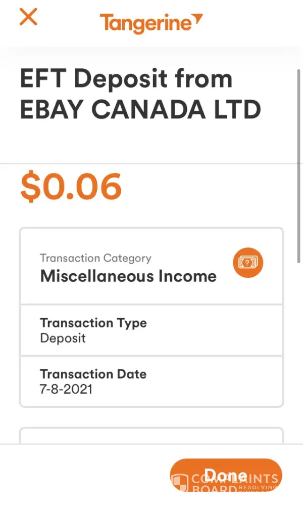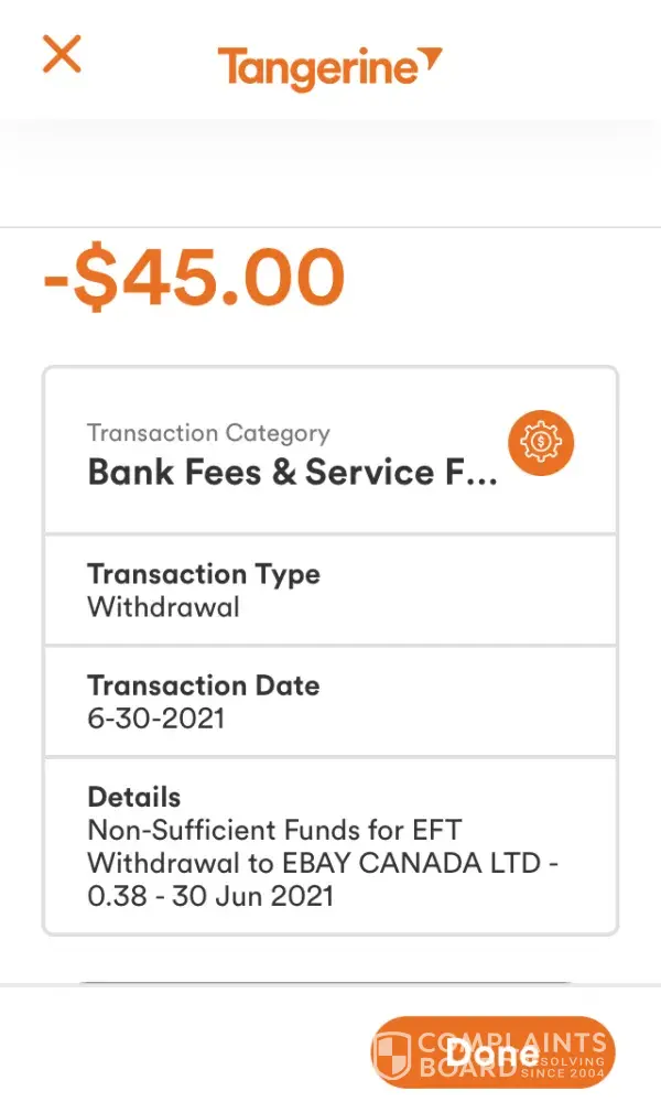 On June 30, 2021, Ebay withdrew $0.38 from this account for a seller refund, without my knowledge or consent for which I incurred a $45 NSF fee from my bank.