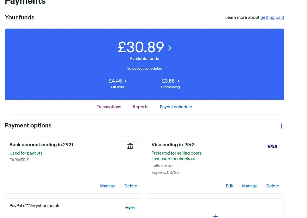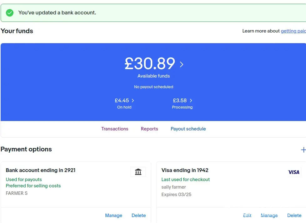 For the past two weeks my account has been held in abeyance by eBay handlers who refuse to take note that all of the payment details are updated and the same name as is on the account is also on the payment details etc etc...