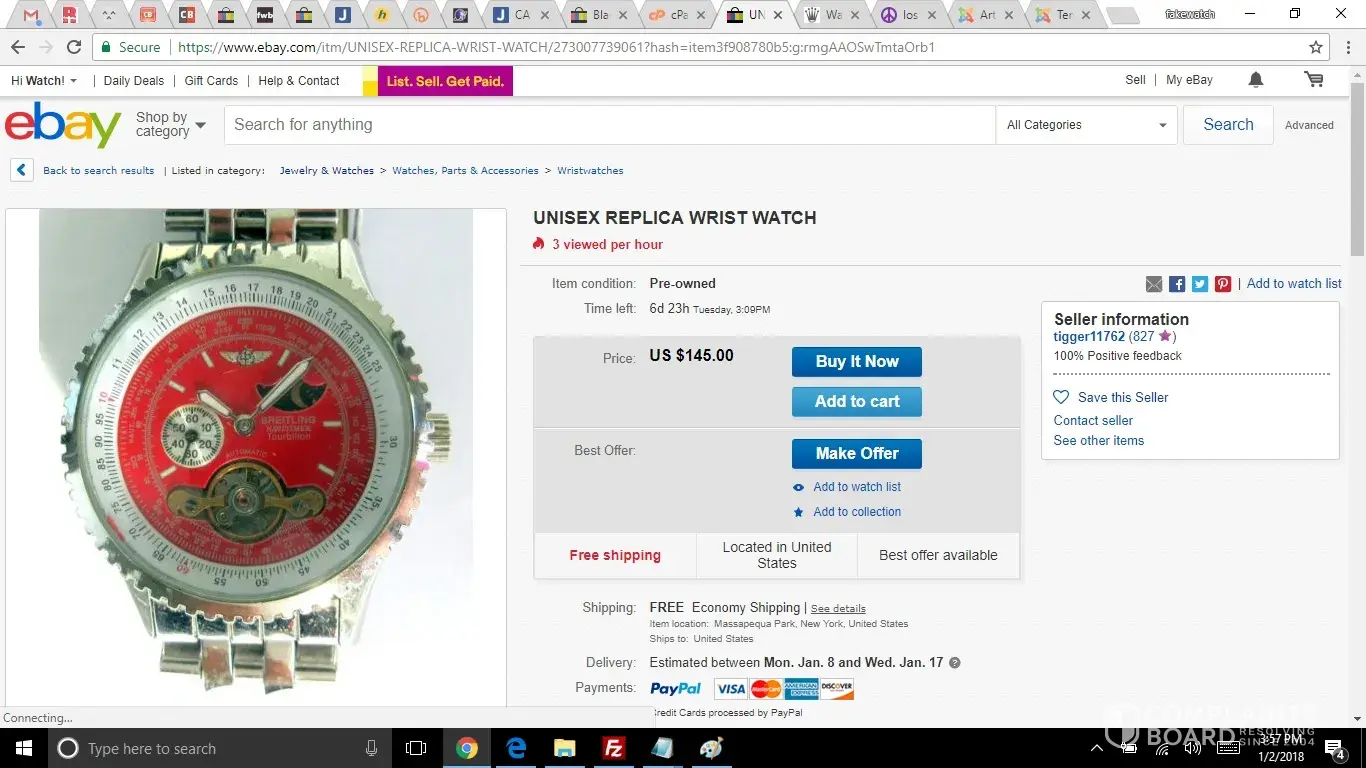 Screenshot taken on 01/02/2018 for the purpose of providing evidence to law enforcement and attorneys for the victim (breitling).