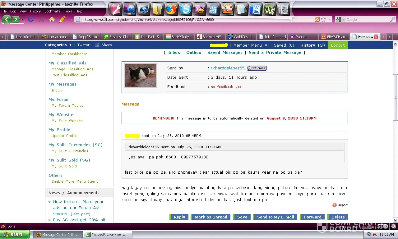 I was also a victim of SCAMMER. I saw his ads sa sulit.com.ph not sa ebay, pero for sure my account din tong pesteng ito sa ebay, halos nabasa ko na kasi ang mga ibang navictim din na same ang modus. Sunday evening July 25 and I was so excited, kasi nga gusto ko talagang bumili ng another phone, nag pm ako sa kanya and nagreply naman and then he said contact ko lang daw siya through his number [protected], nag paload pa talaga ako para makatext lang at yun nga nakuha nya ang trust ko I ask him if may previous transaction na xa sa sulit and he replied na yung wife nya dati seller din sa sulit. Sabi nya dapat early ko pa send ang payment baka daw kasi di umabot sa cut off ng LBC. July 26 mga around 10 nagtext na sya if may na receive na ko na g cash details nya