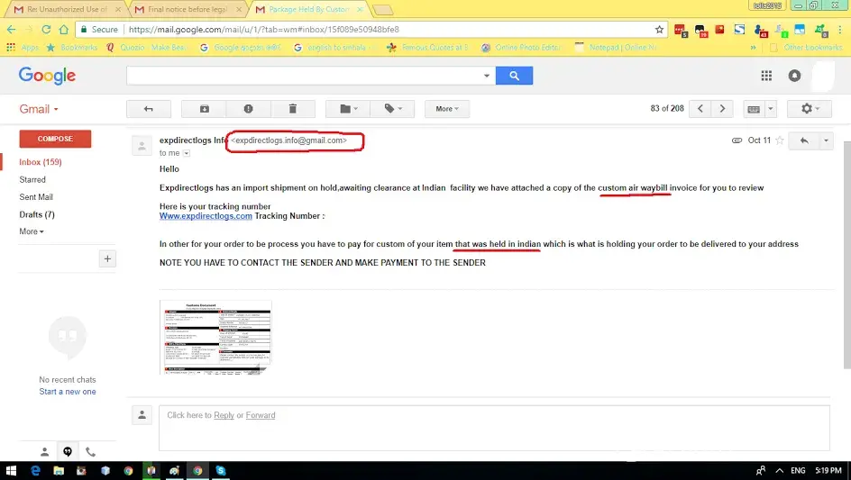 Since I didn't agree to pay, he said that he couldn't get the goods out of customs.it could even be a salesperson working in a logistics company tried to scam me or simply that the supplier was a scam altogether.So this has been a clear sign that something dodgy was going on.