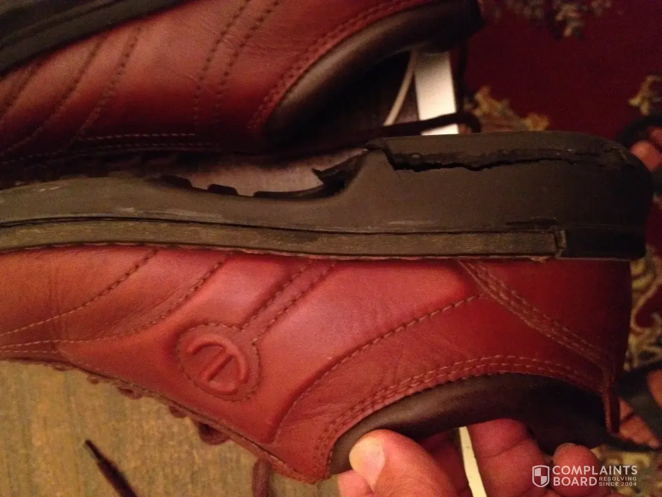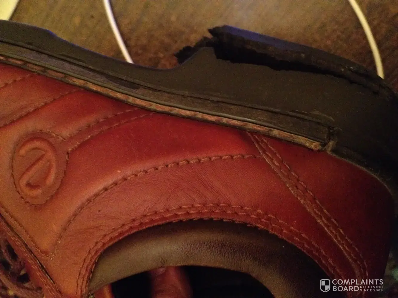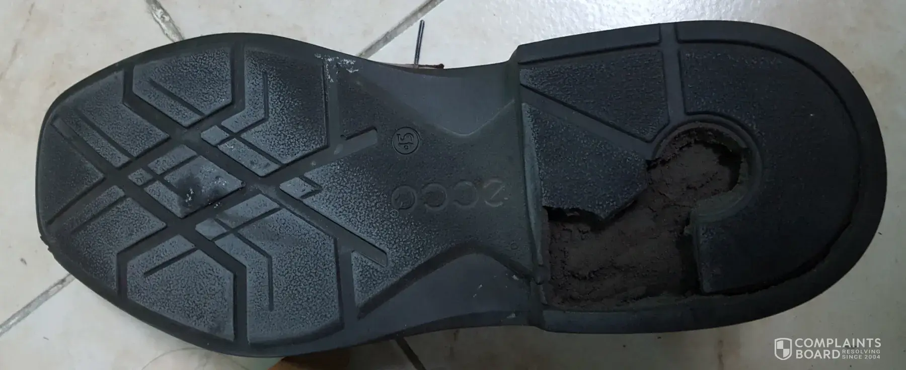 I purchased the shoe in last June from ECCO showroom in Al Ashmak Mall, Qatar. I was using regularly. Last week I felt the difference and I found the right heel bottom part was broken and rubber powder coming out. I took it to show room and came to know that the problem arises, if it was not weared for sometime. And to complaint to the site as they have no way to fix the same. Hence the complaint.