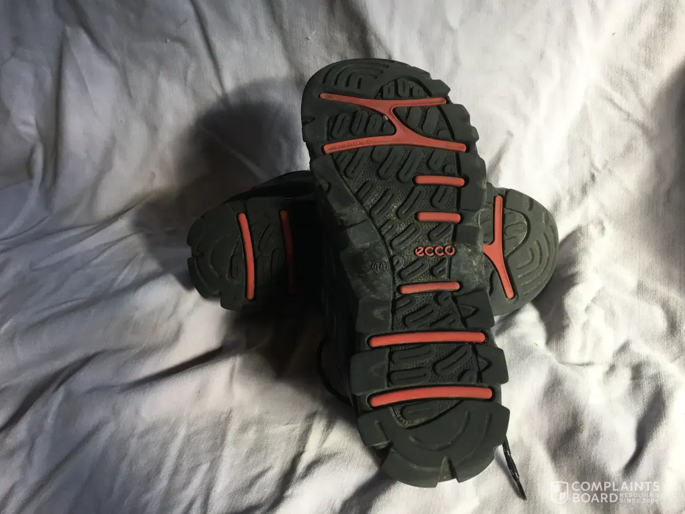 My ecco hiking shoes disintegrated in there first few weeks I wore them. While on a 10 km hike my shoes - both of them disintegrated and lost their soles simultaneously! It was particularily embarrassing since I had been bragging to my friends about the superiority of ecco shoes - I have 7 other pairs. I am extremely disappointed and would like some kind of restitution.
