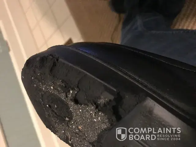 Desired outcome: Coupon for new pair, sole replaced or reimbursement