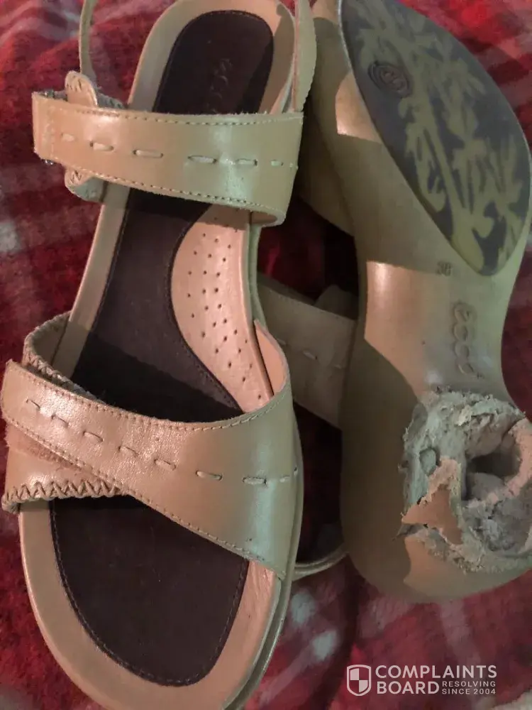 I bought a pair of supposedly good quality Ecco walking sandals a few years ago (so receipt will no longer be valid for return). I have worn them very little and they have sat in a cupboard until now when I decided to wear them again regularly. The uppers are like new but when the soles simply disintegrated, to say I was angry and disappointed would be putting it mildly. I have always been happy with my Ecco shoes and had years of wear from them. I see there have been many similar complaints and don't understand why Ecco have not yet resolved the problem. I'm not interested in why this has happened. It's enough that it has. I took them to the cobblers for repair but he said there was nothing he could do as a new sole would not bond to the disintegrating material and that Ecco shoes these days were frankly rubbish. He should know. Surely you can't want your good name to be in such tatters! Unless there is an acknowledgment of failure on your part and some goodwill recompense I for one won't be buying Ecco again. Can send photo on request.