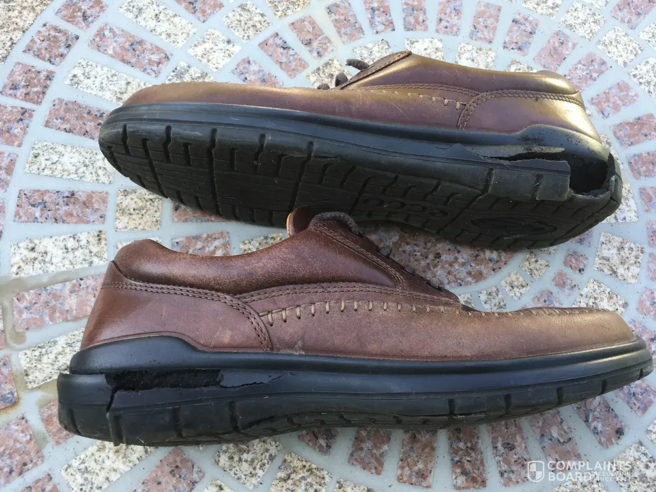 Soles of both Ecco shoes disintegrated during the same wearing, leaving a trail of black rubberized material everywhere I stepped.