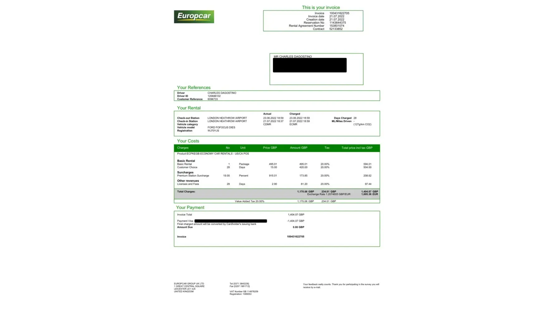 1- ECR charged us a partial payment for a car rental in the period 7 to 13/may/2024 in Scotland, pick up and drop off at Glasgow Airpot, with coverage for cancellation. But they have hidden until payment was done they were nothing else but a broker, acting on behalf of Green Motion car rental company.