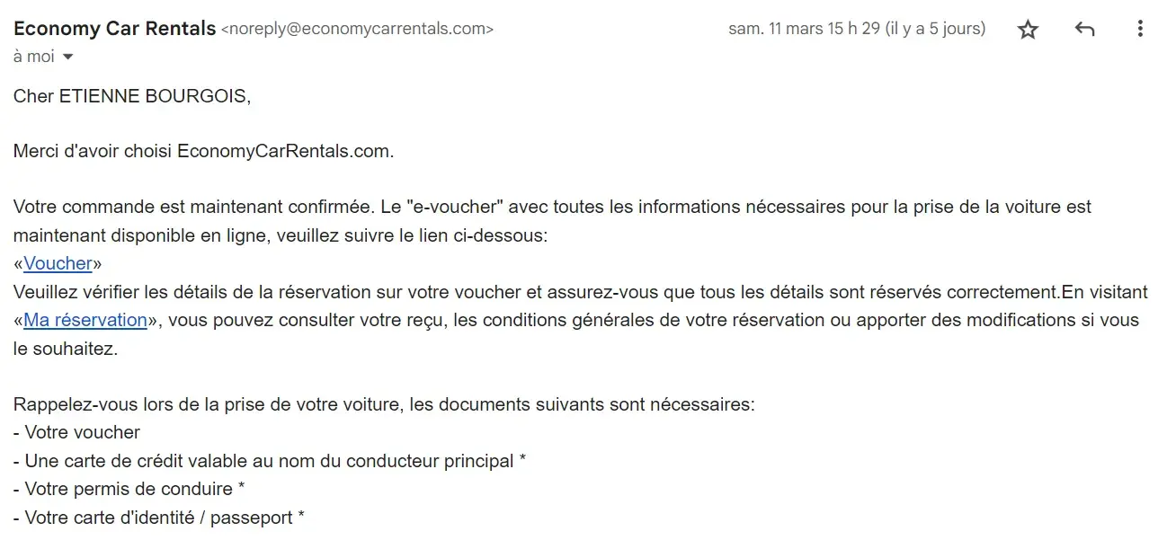 Please note that due to high demand, your reservation was rejected by the first car rental provider, so we forwarded it to another supplier who managed to confirm it. This way, your reservation was not cancelled.