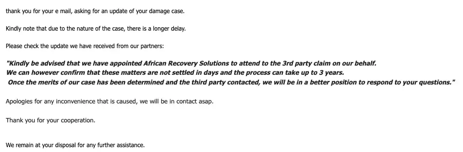 Claimed loss: US$ 450 because they don't Intact insurance. All reputable companies accept intact insurance. I am very disappointed & feel deceived. I hope to hear from you within 48 hours.