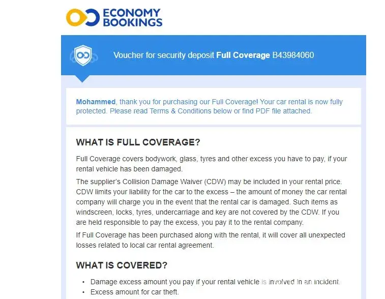 I purchased full coverage for a rental car through economybookings. When I returned the rental car (March 2023), there was a small crack in the windshield. I just now received a bill from the rental car company (Hertz/Thrifty) for $1094.82. I have tried to contact economybookings. There is only a recording, and I cannot speak to a customer representative. I tried to follow the directions on the recording in order to "receive full coverage." I have uploaded some of the numerous documents they require, but I do not have all of them in my possession (the car rental company does.) I have not received any response from economybookings and do not know how to proceed. To guarantee full coverage and then refuse to deal with customers is unacceptable.