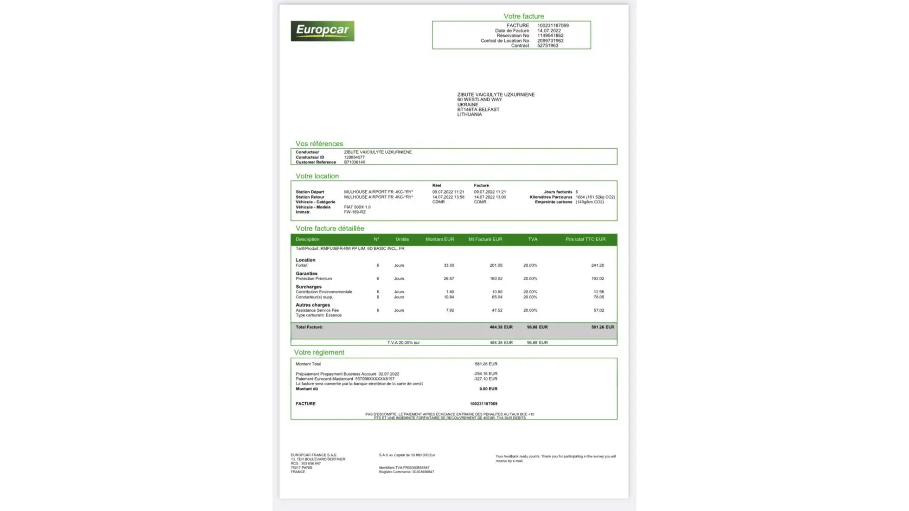 also i was charged for refueling (18 euros) and fuel (71.82 euros), ( I returned the car with more Gaz than when I picked it up. all fees were charged with an additional 22% tax.