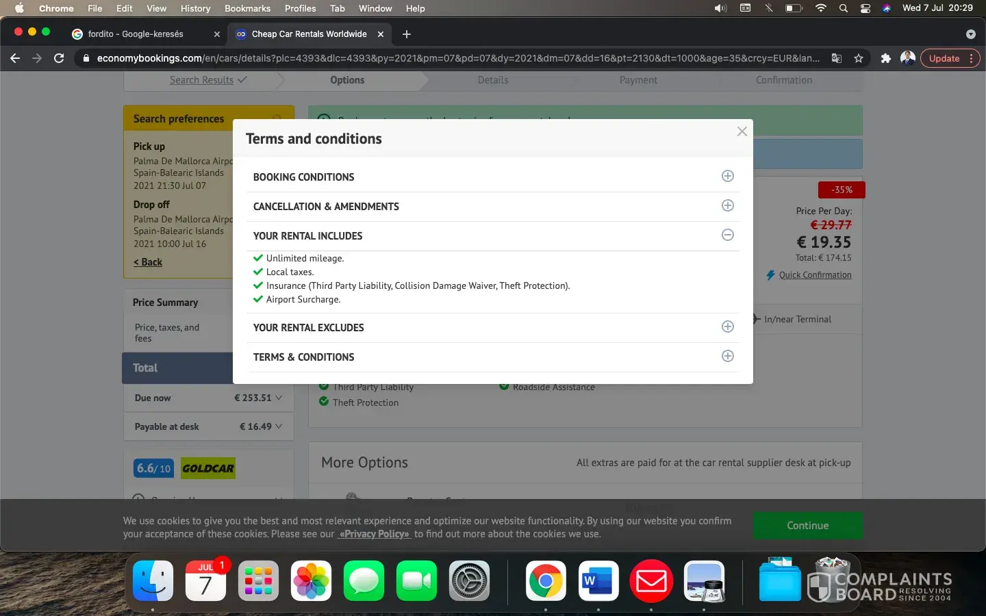 On July 13 th 2021, looking for a car in Florida, I went on the thrifty Car Rental site. For any reason that I do not understand, my research brought me to the site of Economybooking instead of Thrifty Car Rental... so I thought that It was the Thrifty site to book a car for my trip to Florida.