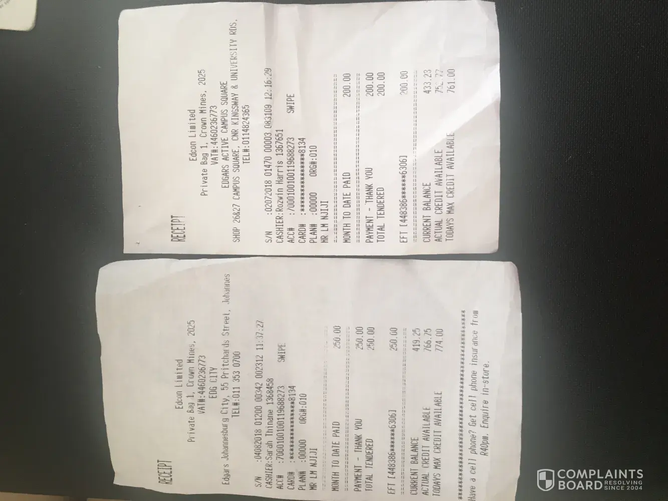 Edgars Fashion / Edcon unauthorised charges on edgars account