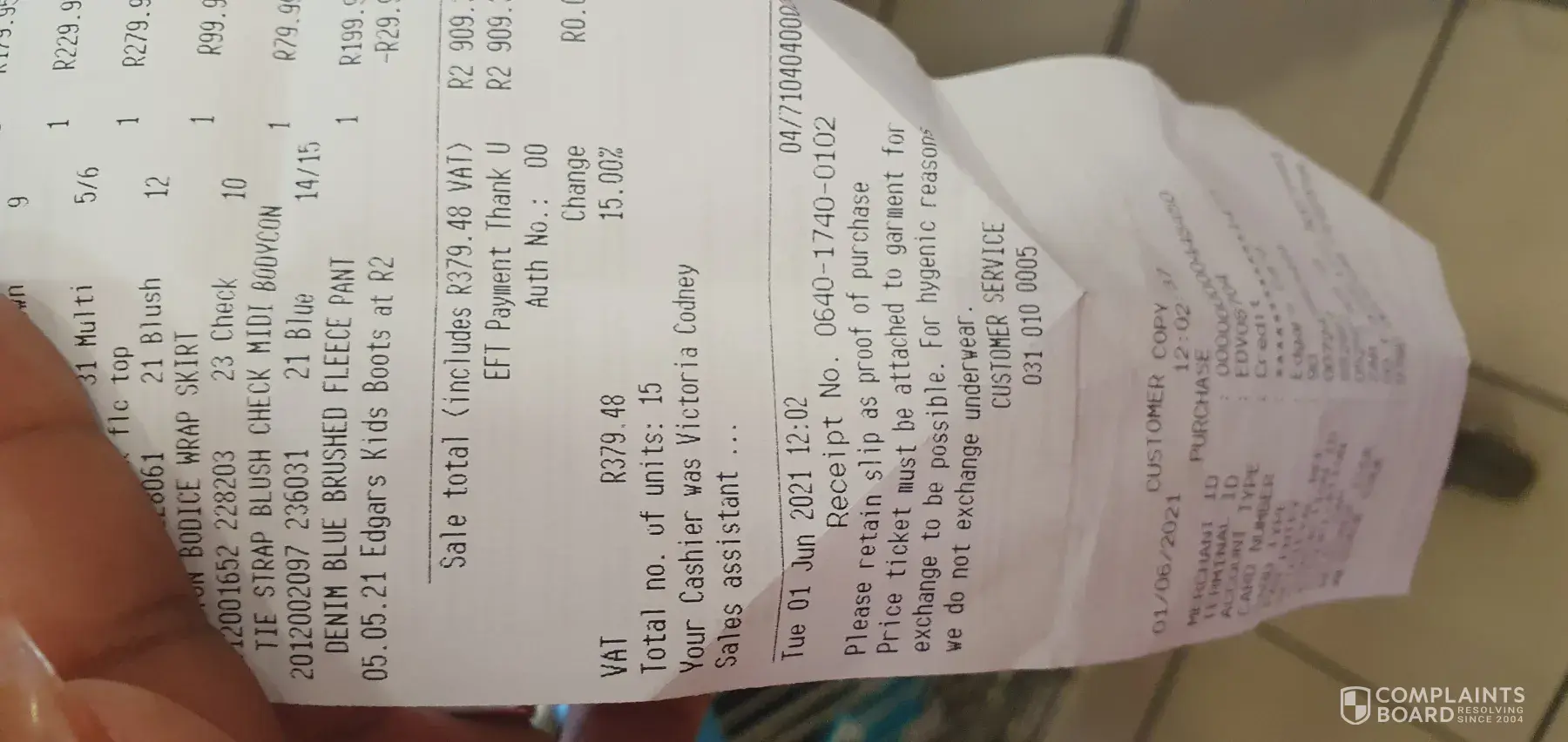 Today, I went back to the Canal Walk branch and after the cashier couldn't help me and was clearly confused, she put me on a call with Edcon. The call centre agent refused to escalate the call after I asked why it was happening.