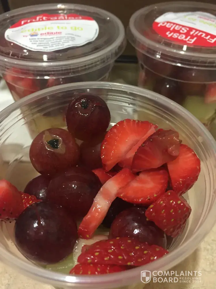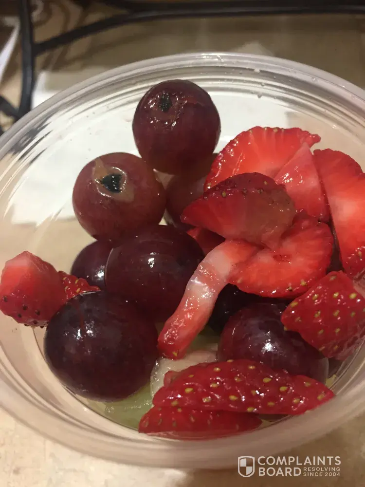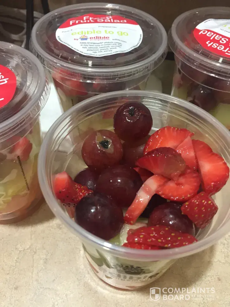 A few minutes after I left the store one of the children said the fruits didn't taste good so I looked inside the cup and noticed some of the fruits were spoiled and appeared to be old or something from a left over arrangement (the fruit pieces even had the holes from the old arrangement sticks)!