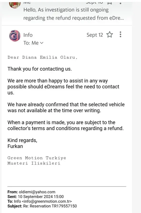 They have also provided different excuses and fake information even to financial institutions( That I was not in time for pick up( completely fake as confirmed by Green Motion).