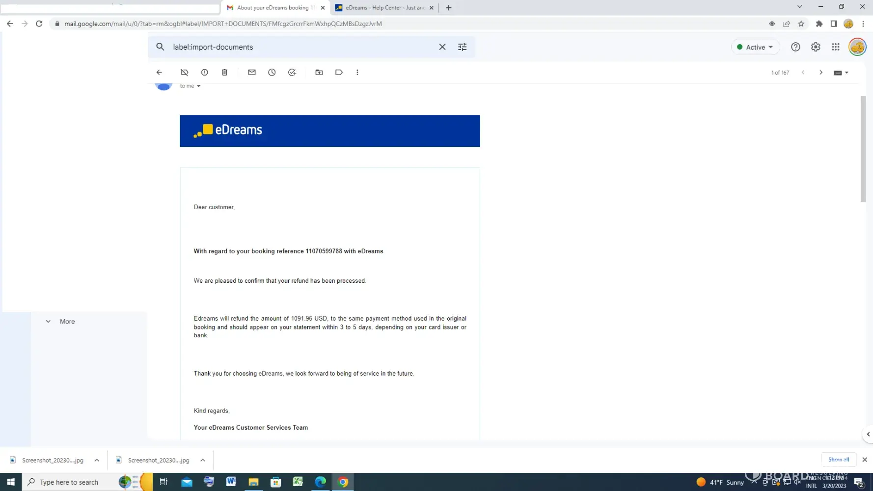 I received a notification from edreams and submitted banking information on 20 July 2022., as follows. I still have NOT received any refund: