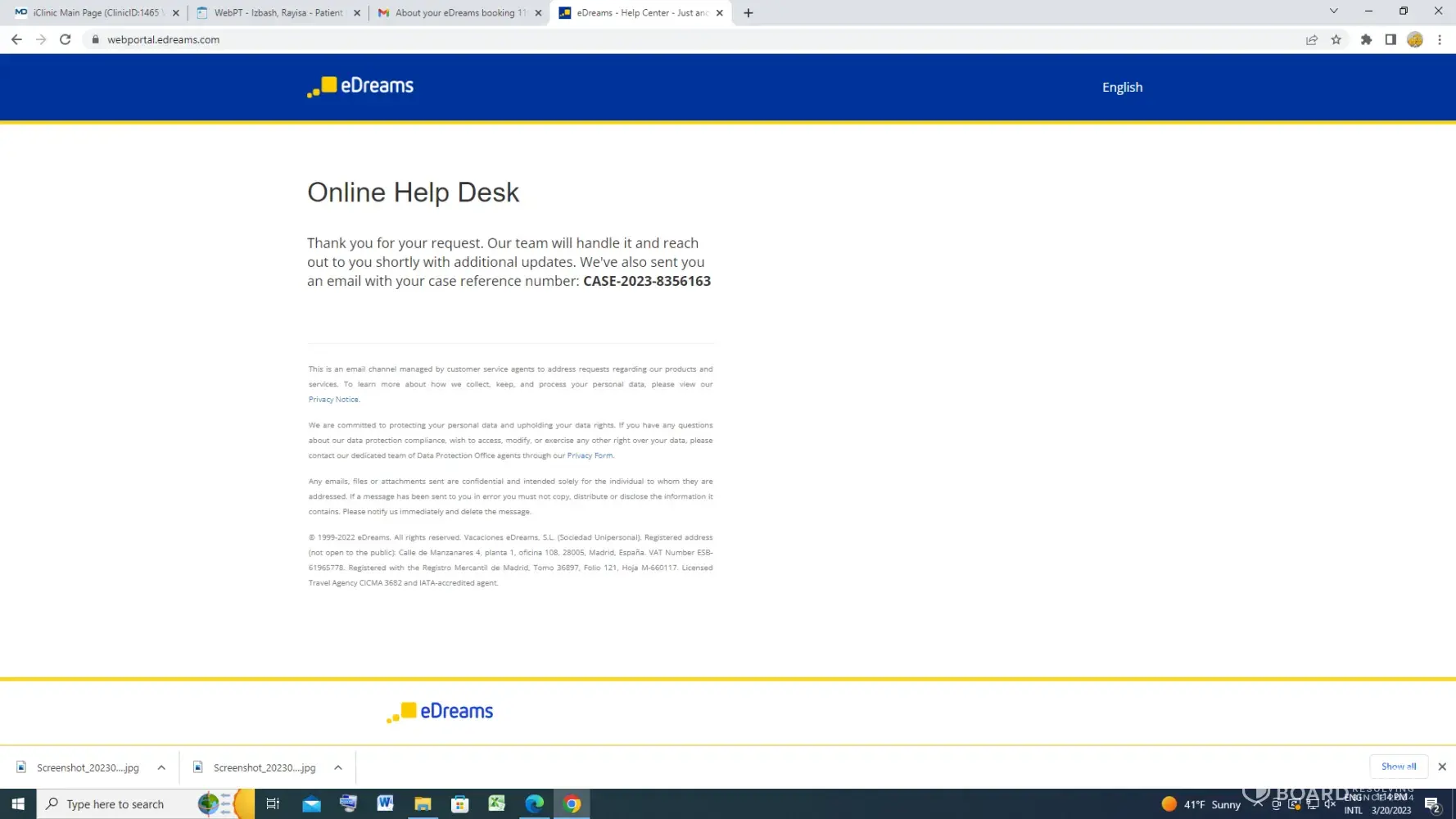 Now, Monday I try to reach eDreams through telephone but I need a reference number that I don’t have.. then they hang up.