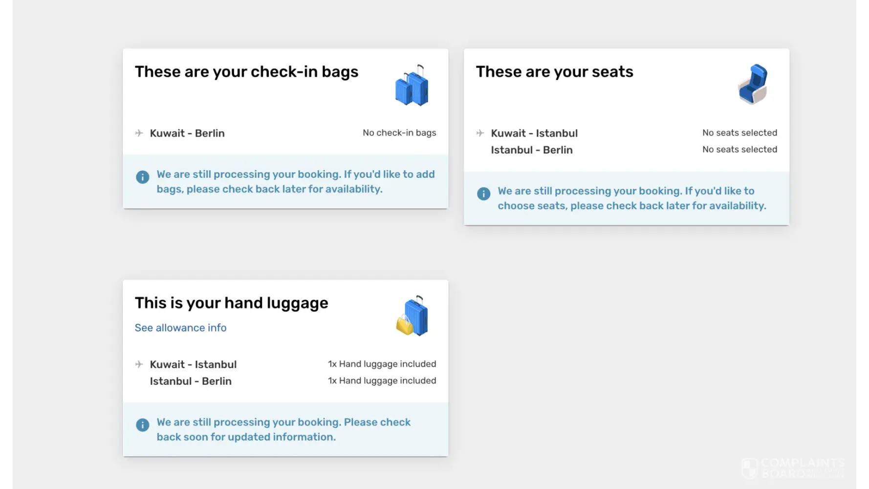 They took my 782 euros & said the booking was being processed, next day said the airline could not confirm the flights so have to change airline which begrudging did even though travel time was doubled and I have a 1 yr old baby (not ideal) then they cancelled the alternative the next day saying the same, at this point I had enough and requested a refund,