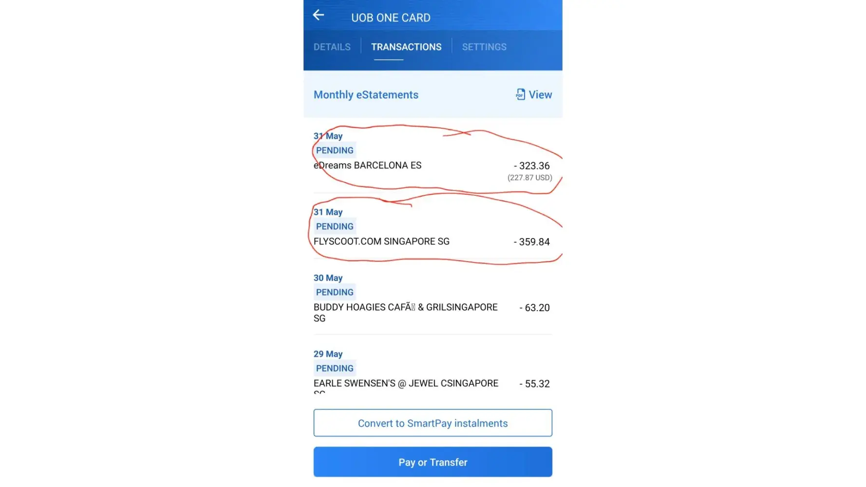 But I received 2 deductions from my credit card (One from eDreams and the other from FlyScoot) totally $683.20.