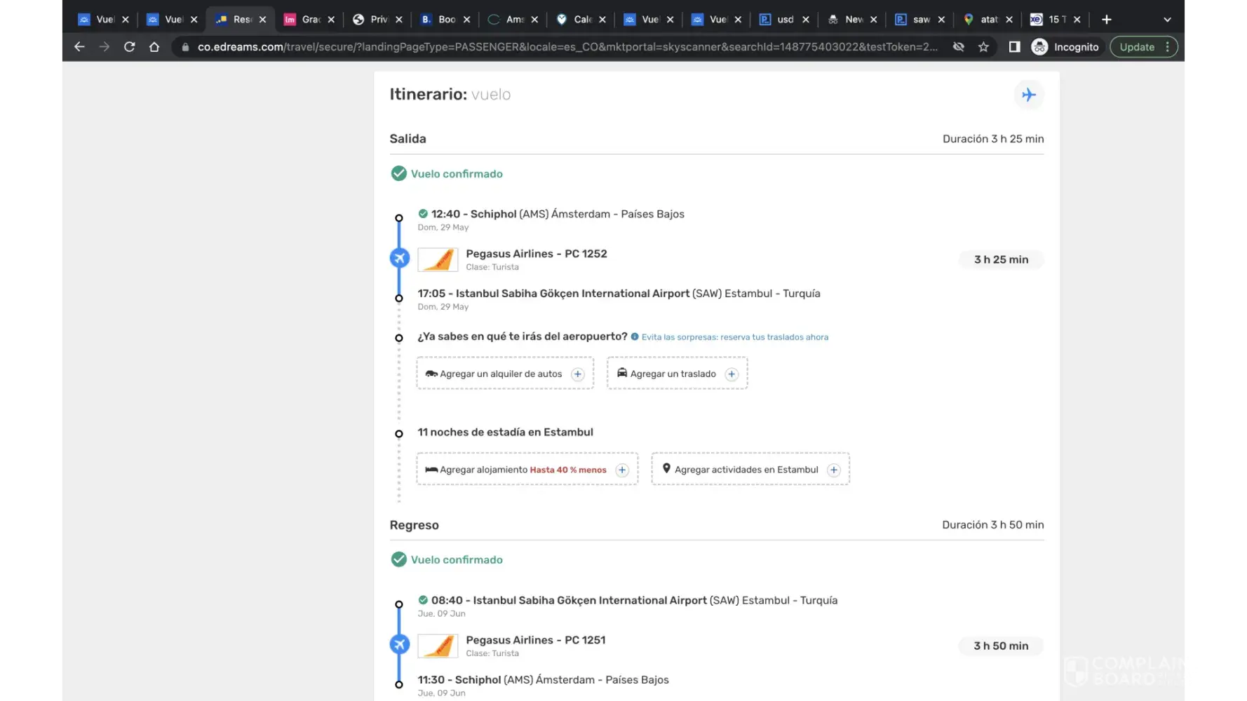 Return: June 9th (SAW to AMS) - 8:40 - Flight PC1251