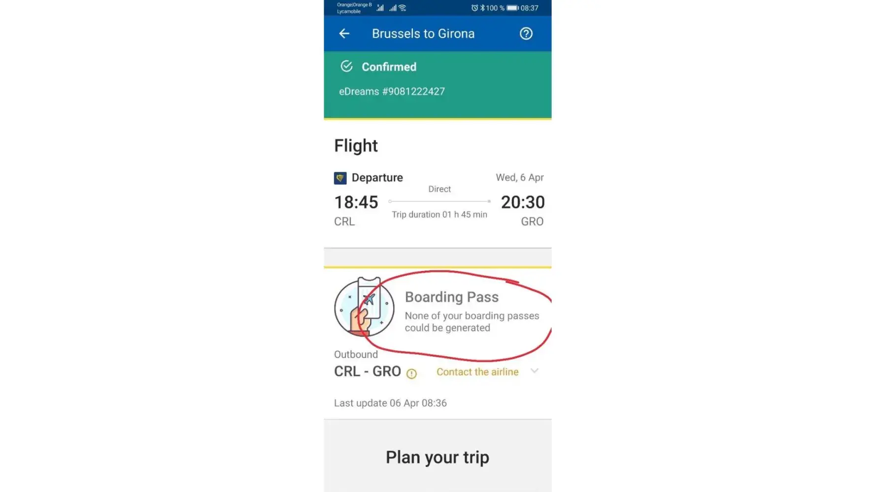 I bought a Ryanair flight ticket on edreams last week the 2nd of april. I checked in on edreams application. Yesterday the app said "my ticket would be generated and send by email". Today it says "none of my boarding passes could be generated. Contact the airline".