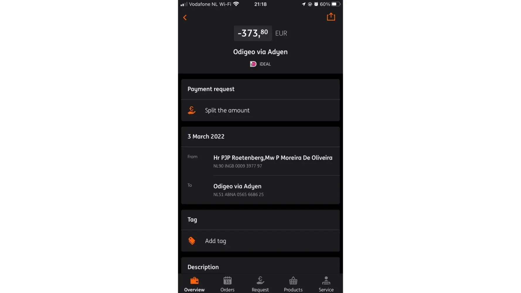 Desired outcome: I want to return my money to my bank account, the amount of 54 euros!