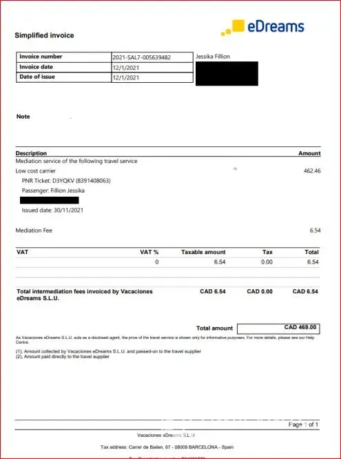 Edreams Booking cancellation and refund