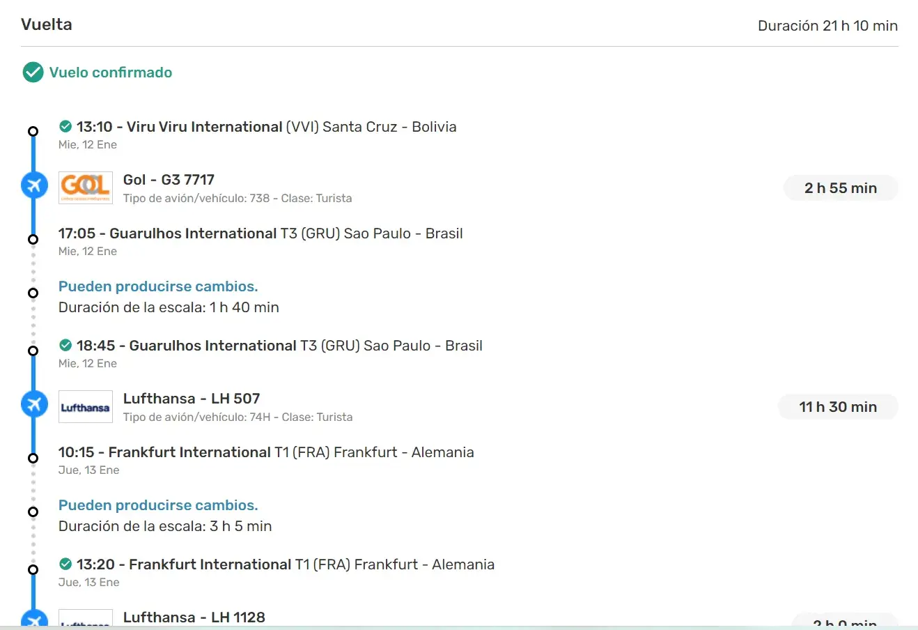 my problem with eDreams happened last Wednesday when I had to come back to Barcelona. On the 9th of October, I brought a ticket to go from Barcelona to Santa Cruz (Bolivia) and back. The way to Santa Cruz was scheduled for the 8th of December and it was full of stops and had to go from Barcelona to Zurich, then to Sao Paolo with Swiss Airlines, and then to Santa Cruz with BoA. This was scheduled to go on the 8th of December. The way back was scheduled for the 12th of January and I was supposed to go from Santa Cruz to Sao Paolo with GOL and then do a connection to Frankfurt and Barcelona with Lufthansa. The problem occurs when the 12th of January I show up at the airport and am told that GOL does not flight to Bolivia since 2020. So what happened is that eDreams sold me a ticket for a plane that does not exist and that is called fraud.