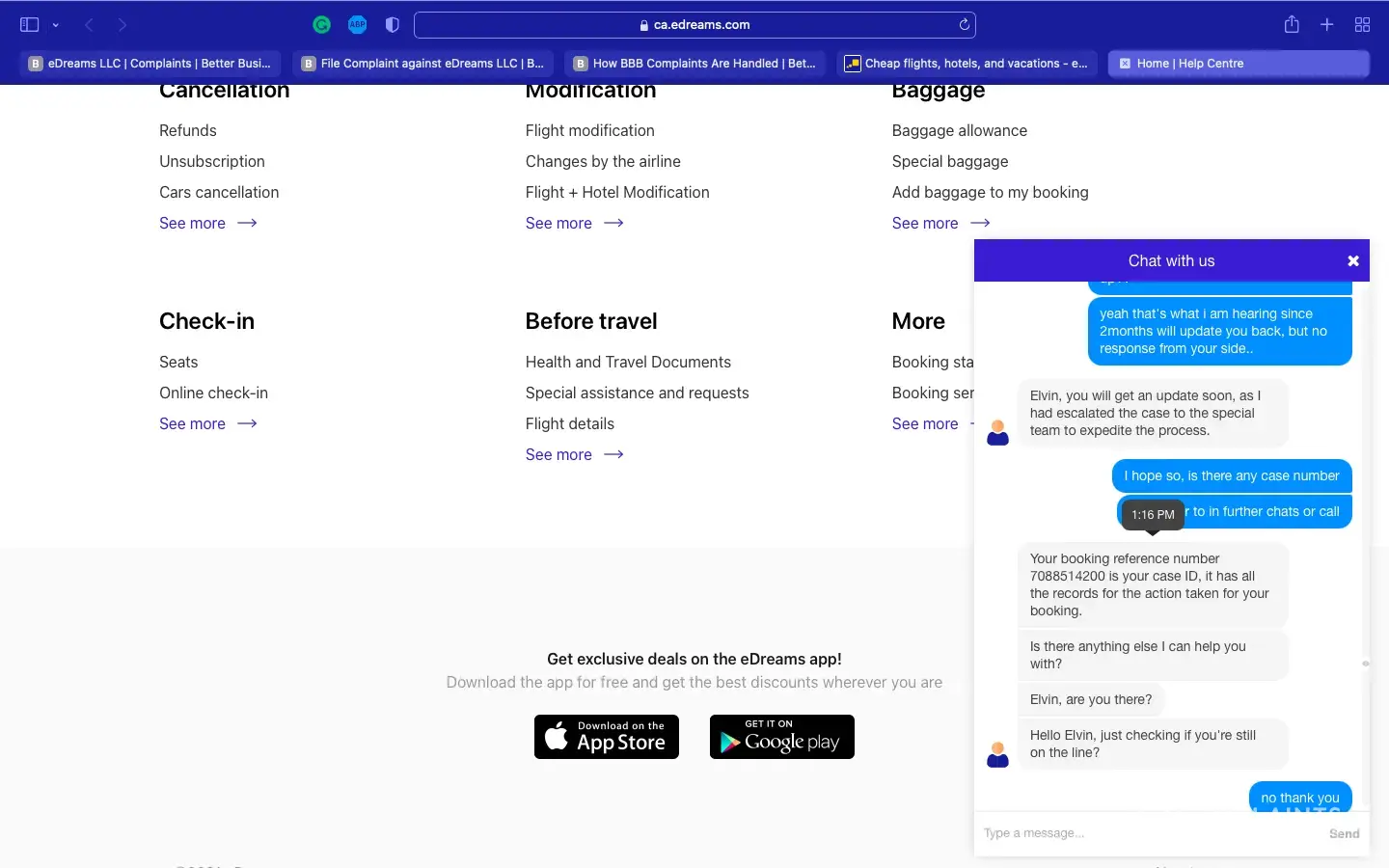 13 October, called eDreams, spoke with Aastha. She says will ‘escalate' the matter. Says wait 48 hours. Says they will call me.