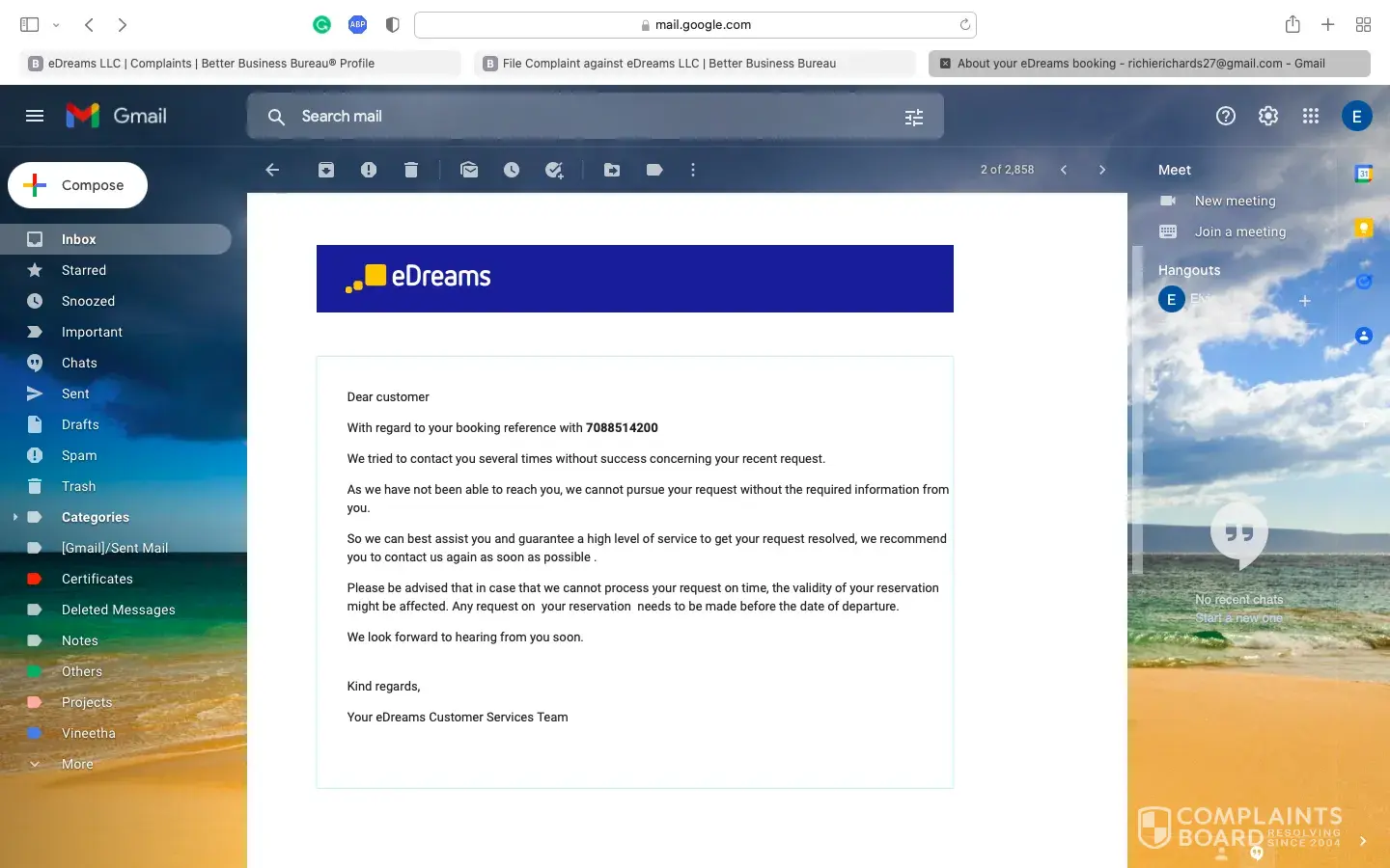 Dear folks at Complaints Board, are you able to take direct action to contact eDreams? Do you have effective ways of putting pressure on this company, which is obviously defrauding hundreds and hundreds of people ?