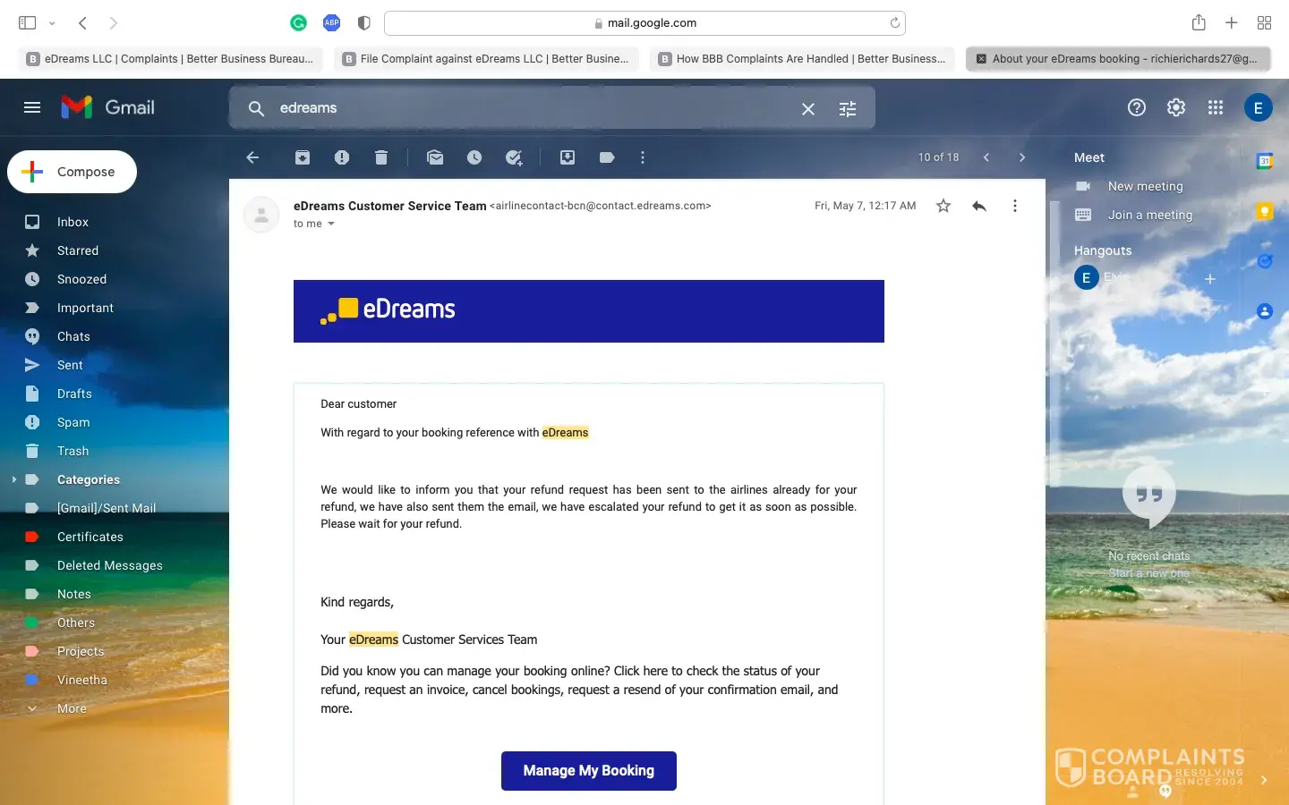 eDreams is not refunding me my money. It has been over a year now. Its a FRAUD!!!!! Beware!!!!