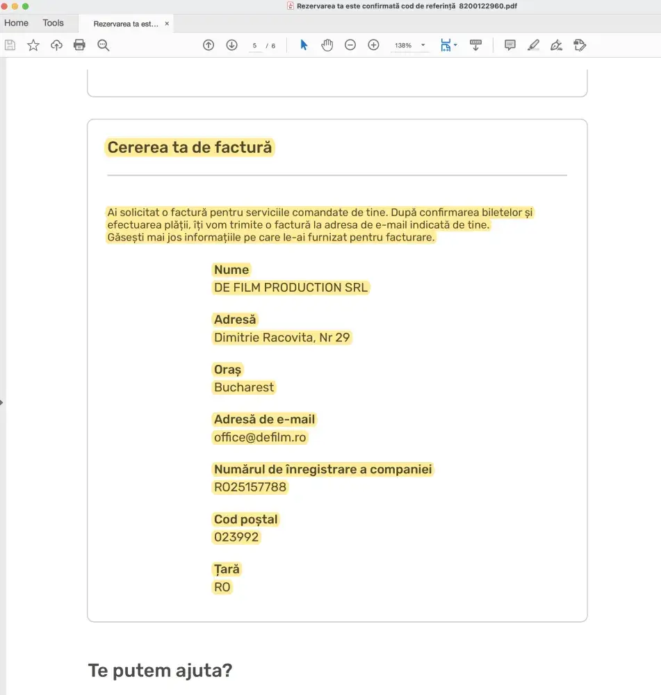 Hello, I made a booking, [protected], on the 27.10.2021 and I still haven't received the invoice, although we selected we wanted an invoice and we wrote all the details as attached.