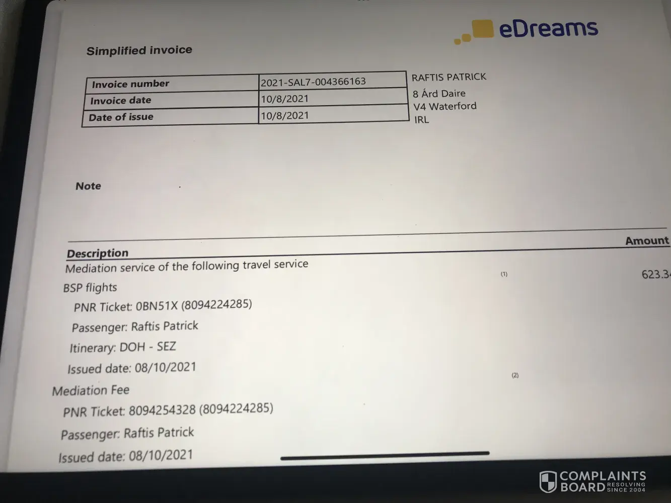 I am writing to you to raise an issue about: Travel Agents EDREAMS