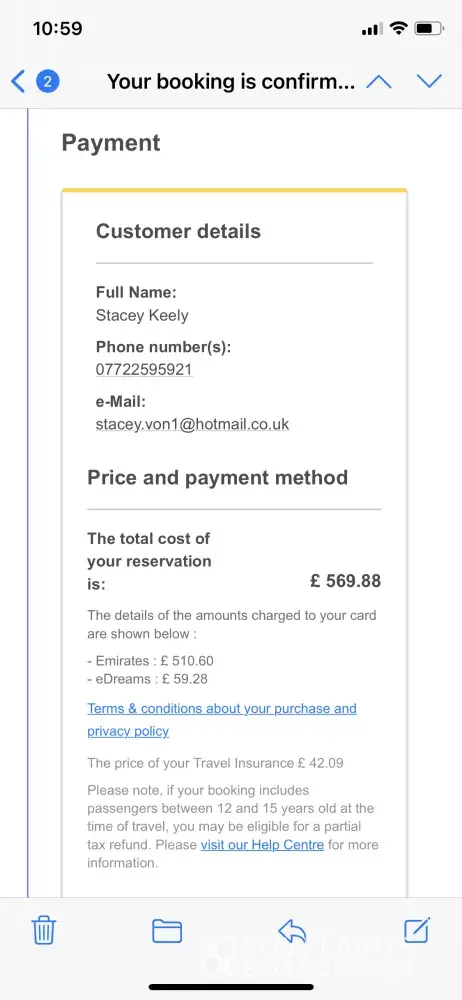No confirmation email from eDreams after payment taken