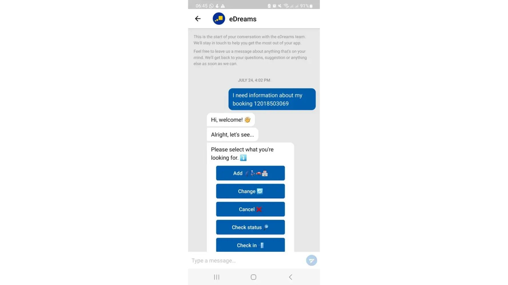 Then I called [protected] eDream Customer Support, and one lady attended the call from eDreams Hotel Dept. She shared a weird statement saying that they don't have such a booking reference number.