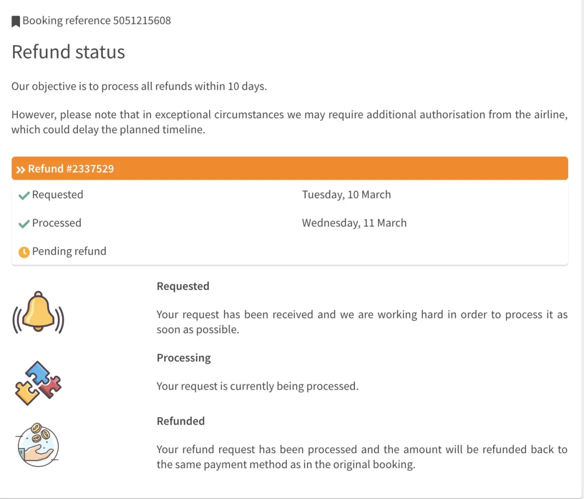 eDreams issued me with a policy change on the 13th May 2020 stating that they are no longer issuing cash refunds, and proceed with attempts to obtain my "consent" to the issuing of a voucher rather than a cash refund. I have recorded verbal confirmation from BOTH airlines that this is not the case, and that they issue cash refunds where the refund is requested. eDreams has made no such request, and have verbally confirmed this.