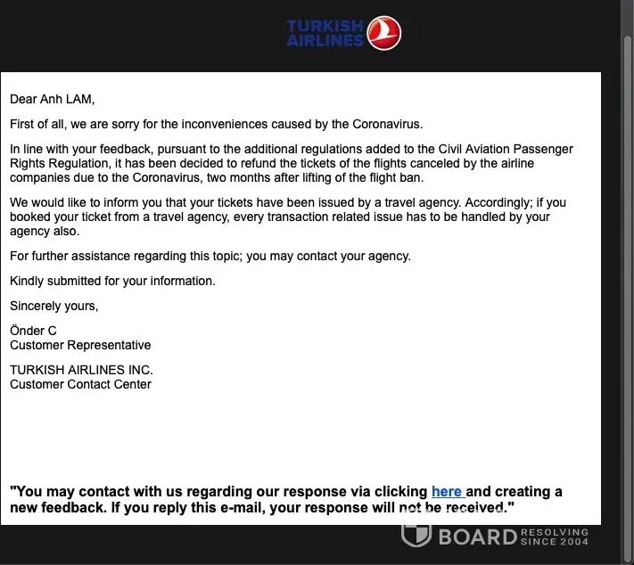 I would like to share a links for all US citizens and permenant residents of US to file a complain against eDream on https://www.ftc.gov/news-events/media-resources/identity-theft-and-data-security/filing-complaint. For unfair service and you may be able to file a complain in your state insurance department with NAIC. I will do that anyway just I wanna get well and go back to the US. I booked a ticket and insurance for cancellation and assistance with that insurance company Eruop assistance. You may file a claim on the link https://earefund.eclaims.europ-assistance.com/. If you bought insurance. Turkish airlines did changes on my flight and I rejected then they refunded all amount charged by Turkish and confirmed that for me. eDream booked for me different flight with American airlines unrefundable ticket and unchangeable means I'm going to lose that money. I called them a lot and a lot and no answer and till now no any email from eDream later I found in their terms and conditions just you need to call them means no any email or any efficient means or way to let them know. My money back will let me to do all my best and anyway anywhere including file a court case in Berclona, Spain