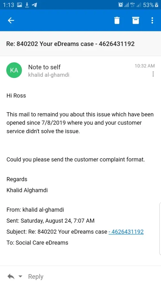 Hi this the 4th time i have tried to make contact with edreams about this issue. please see below my email i have sent to you customer service many time over the past week;