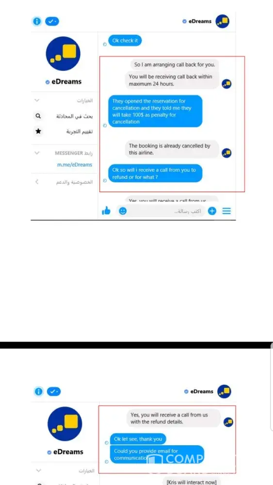 I have been messaging eDreams since early this morning trying to sort this out. Most of the time I was being attended to by a robot but on 3 occasions I had different agents messaging me and promising me that they would get a supervisor to call back in an hour or three (after I requested this). I gave up after 9 hours.