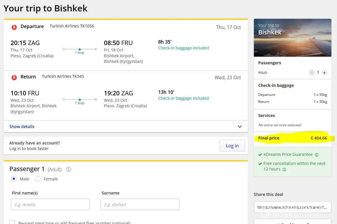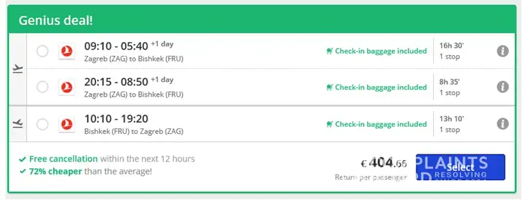 eDreams flight zagreb-bishkek-zagreb, reference [protected]_ overcharged