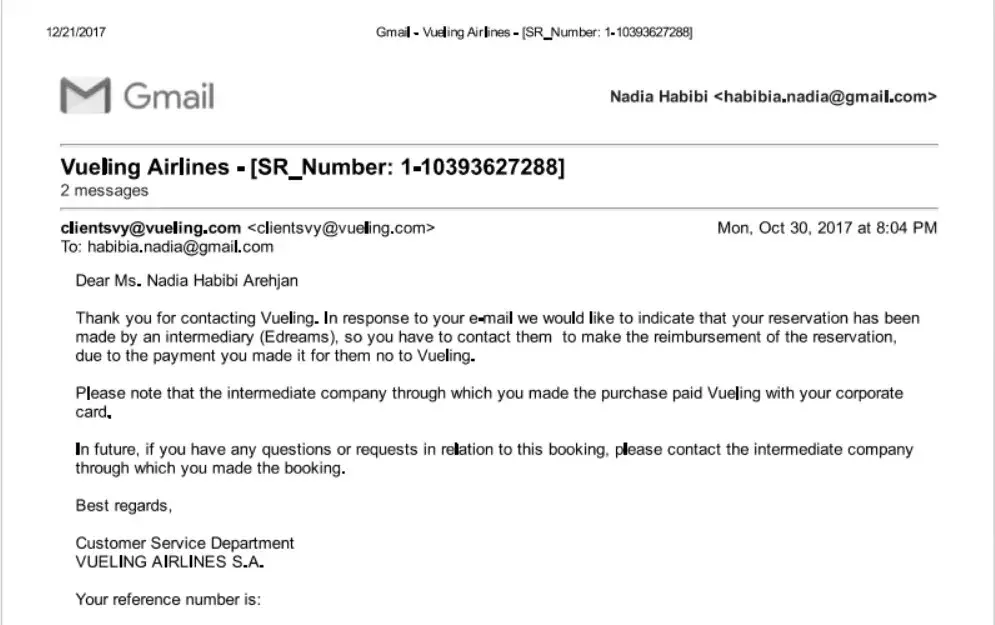 After many forward, backward emails I haven't receive refund, as edream email, I am eligible for tax and vueling accepted to return my money via edream.