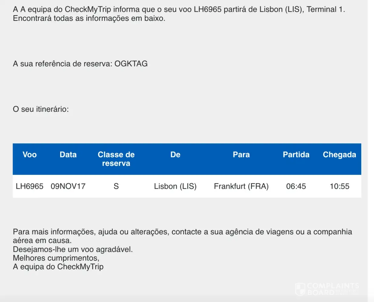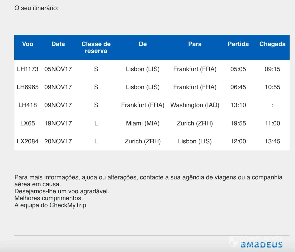 And again on the 9th of November I get another email (exhibit 6, 7 and 8) with even more flight changes. Lisbon to Frankfurt on the 5th of November, Frankfurt to Washington on the 9th. Another mistake.