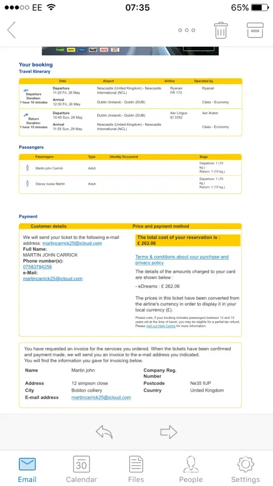 I booked a fly via edreams.com website.