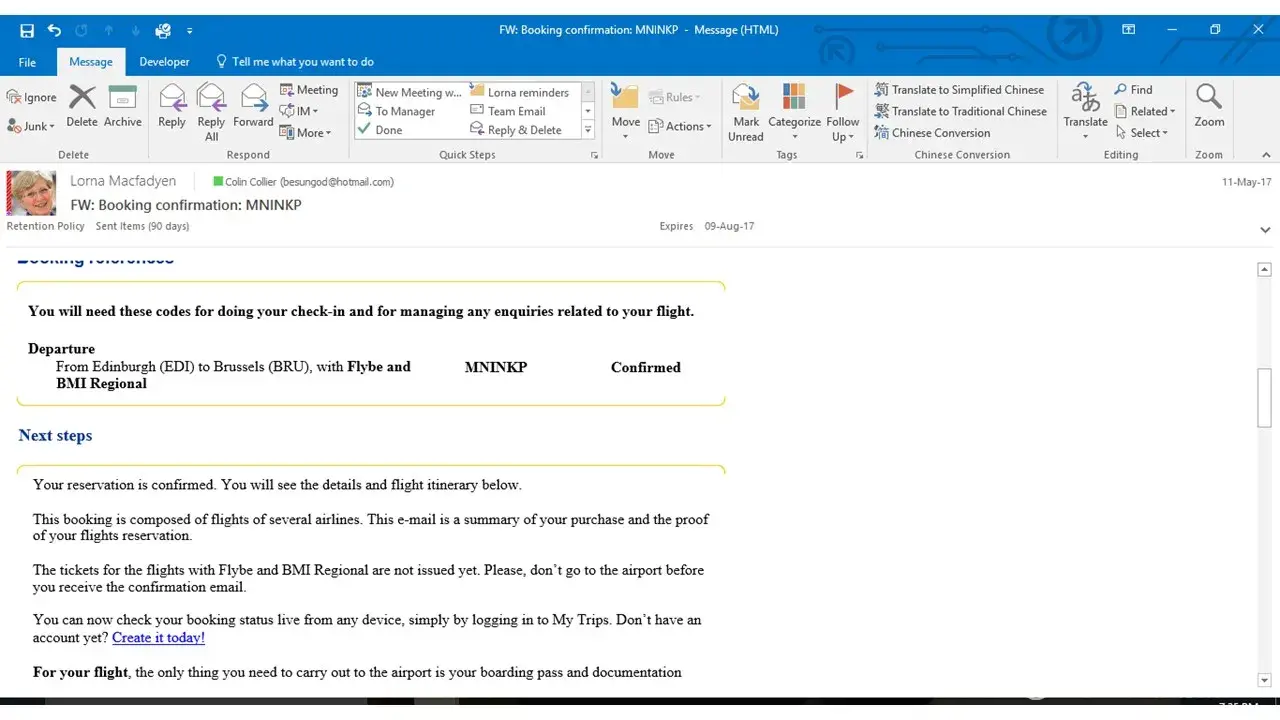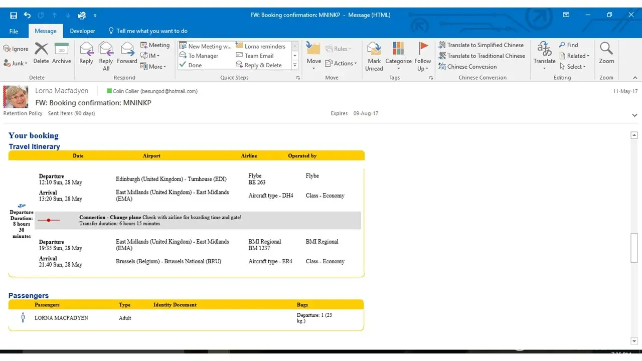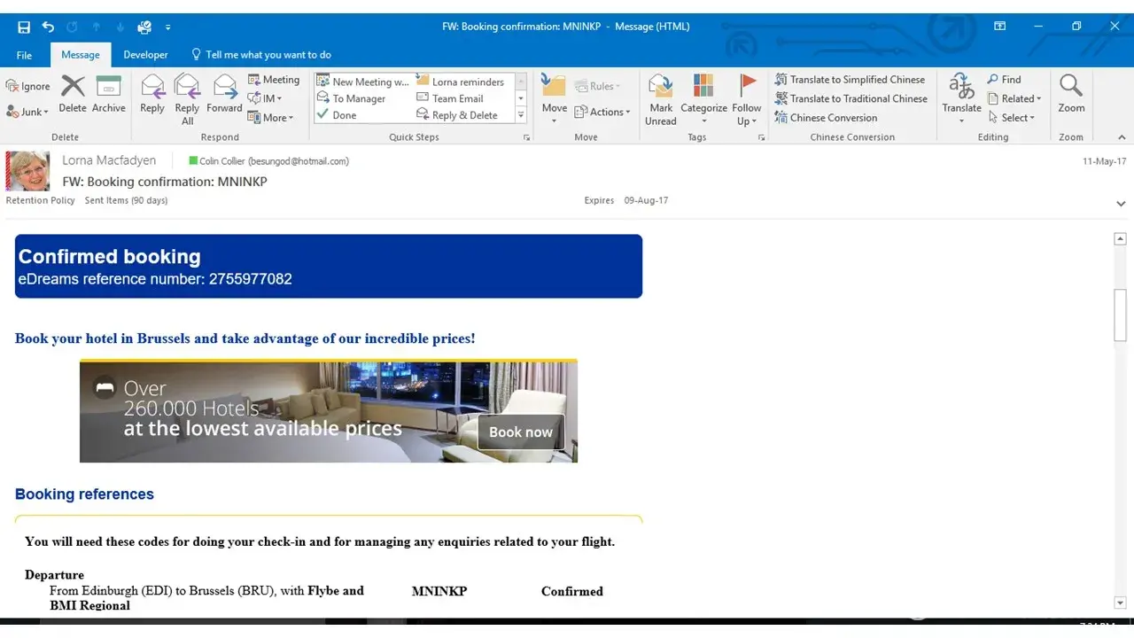 On the 11th of May, I booked my flights with you, from Edinburgh to Brussels on the 28th may, which you confirmed that day - eDreams reference number: [protected]