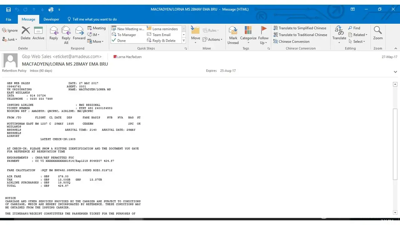 The original ticket cost € 286.82