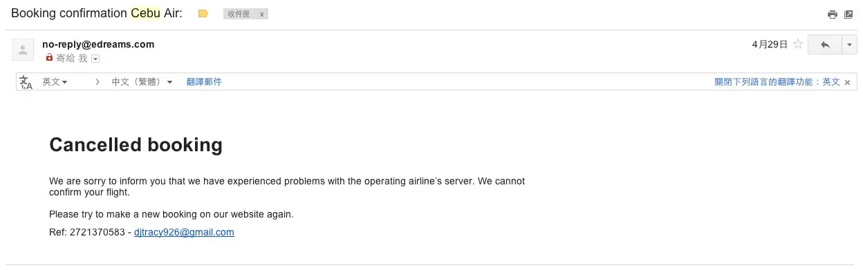 On April 29, I got an email saying my booking is cancelled that I need to rebook.