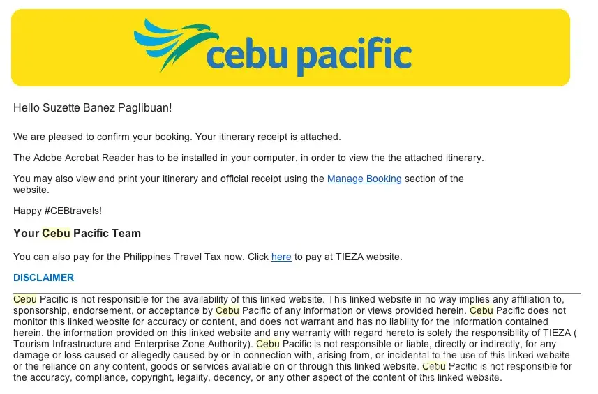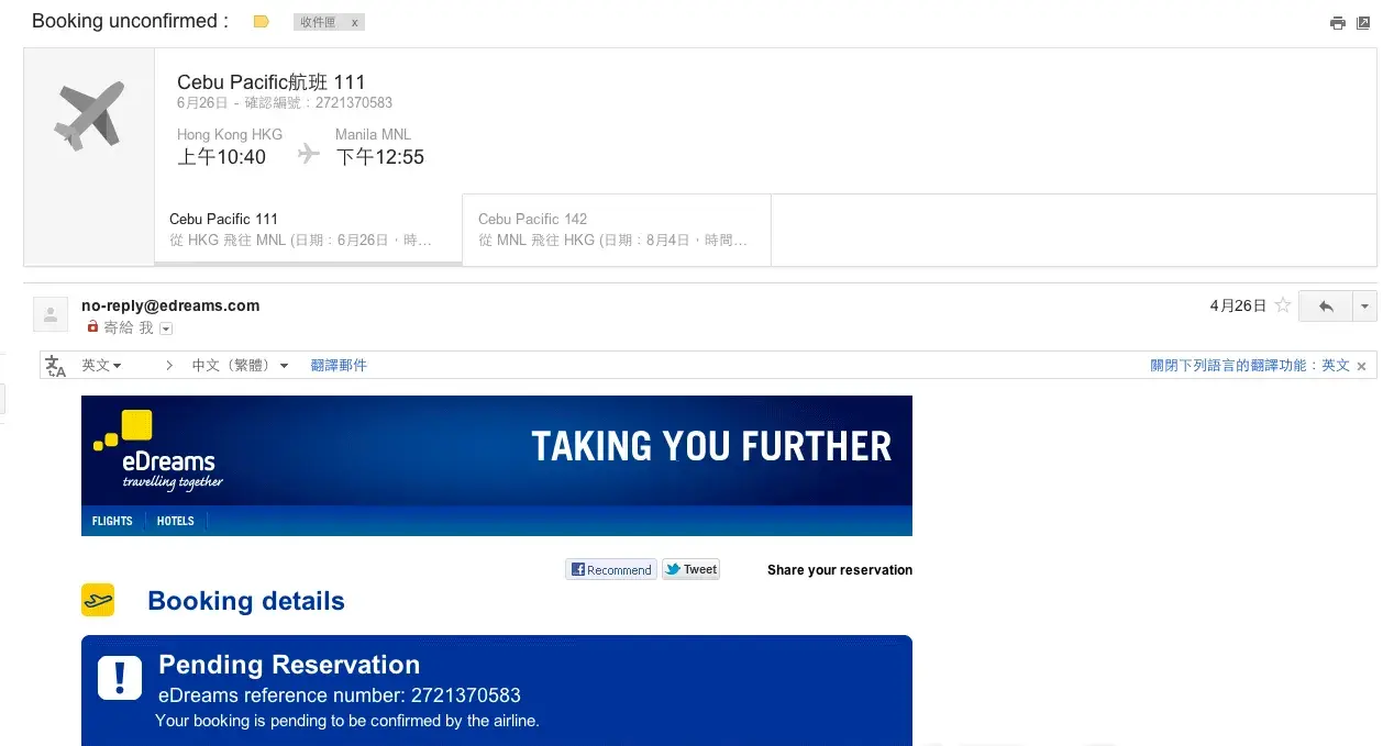 After ONE month on May 25, I got an email saying the flight is now confirmed and they just charge my credit card. Now I have two bookings under same name flying to Manila with CEBU airline.